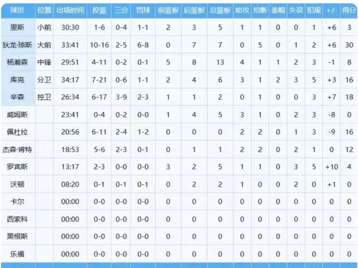 杨瀚森,首发登场29分51秒,贡献8分、13篮板、4助攻、1抢断、1封盖,效率值-1(上半场为-21),三分球2中0,罚球1中0。