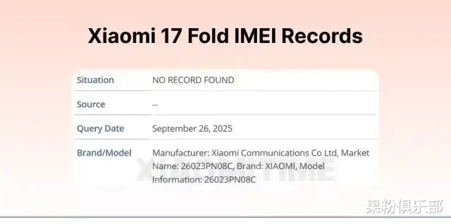 泄露内容显示,该设备可能打破 MIX Fold 系列命名规则,转而以「小米 17 Fold」的身份归入小米主品牌数字系列。