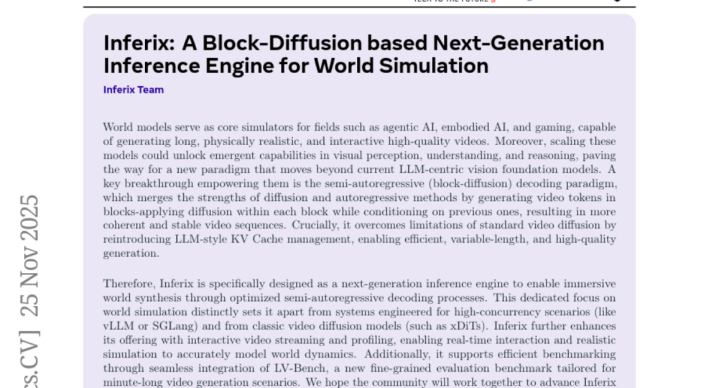 当你打开手机看短视频时,可能很难想象背后隐藏着一个巨大的技术挑战:如何让人工智能像真正的导演一样,创造出既连贯又逼真的超长视频内容。就在不久前,来自浙江大学、香港科技大学和阿里巴巴达摩院的联合研究团队发布了一项突破性成果,他们开发了一个名为Inferix的新一代推理引擎。这项研究于2025年11月27日发布在arXiv预印本服务器上,论文编号为arXiv:2511.20714v1,为世界模拟技术带来了革命性进展。