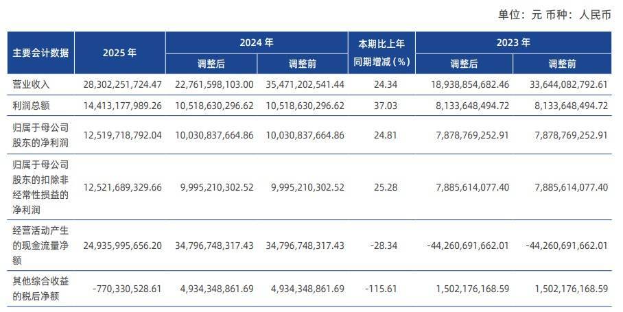 财报显示,2025年,中国银河实现营收283.02亿元,同比增长24.34%;归属于母公司股东的净利润125.20亿元,同比增长24.81%;加权平均净资产收益率为 9.84%,同比增加1.54个百分点。截至2025年末,中国银河总资产为8557.45 亿元,较2024年末增长16.04%;归属于母公司股东的权益为1477.80亿元,较2024年末增长5.20%。